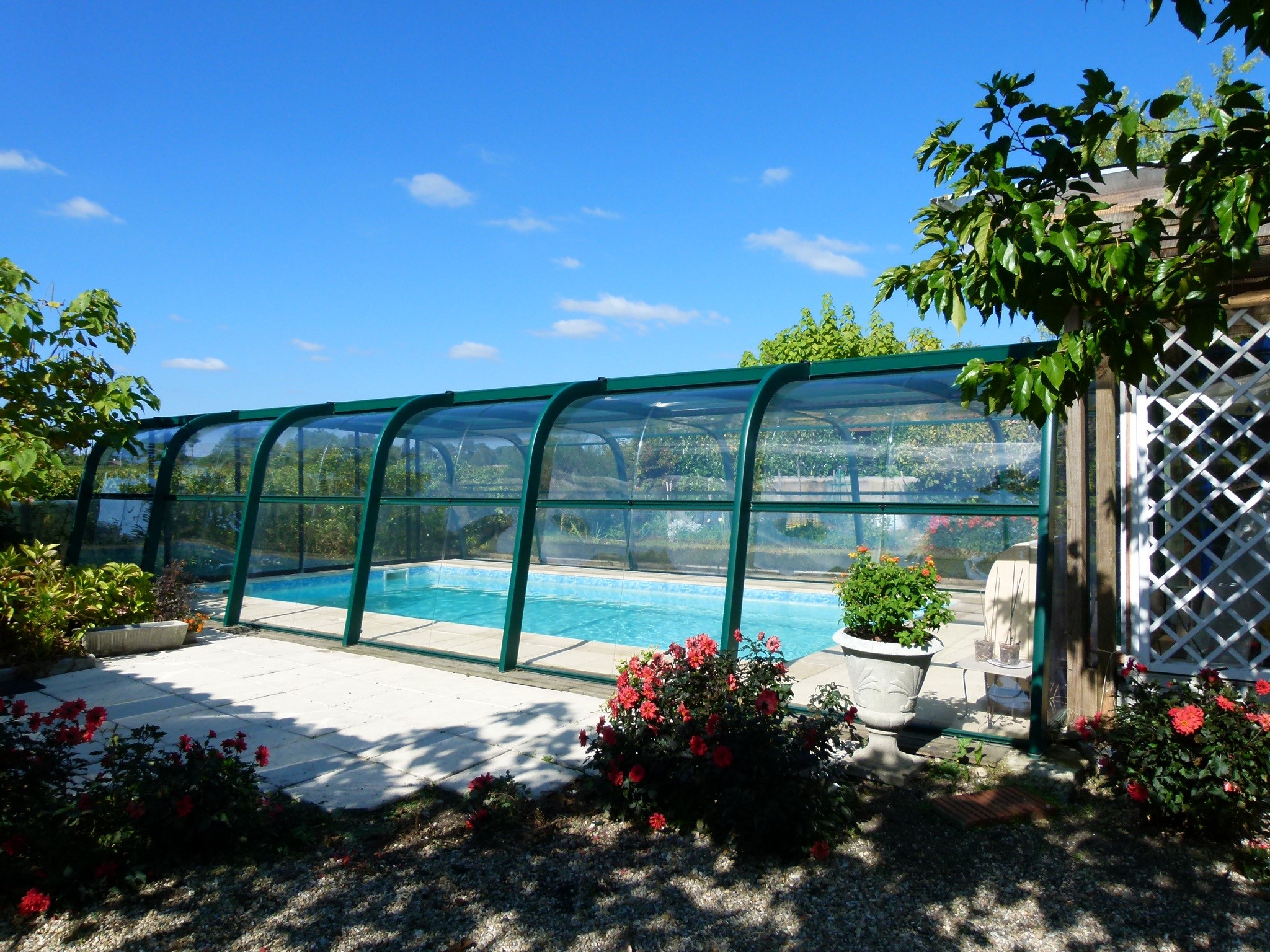 - Les abris créent un effet de serre qui augmente la température de l’eau, et prolonge ainsi la saison de baignade.